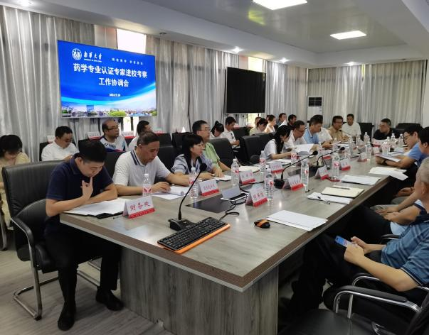 首先,教务部副部长肖锡林汇报了药学专业认证前期考察工作的执行方案,并详细说明了专家组考察工作日程安排、相关职能部门的工作任务分配以及教学单位材料准备等情况。