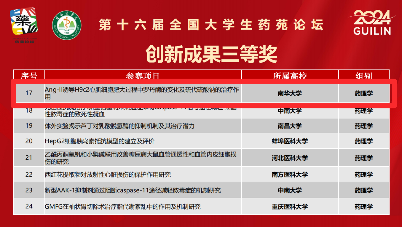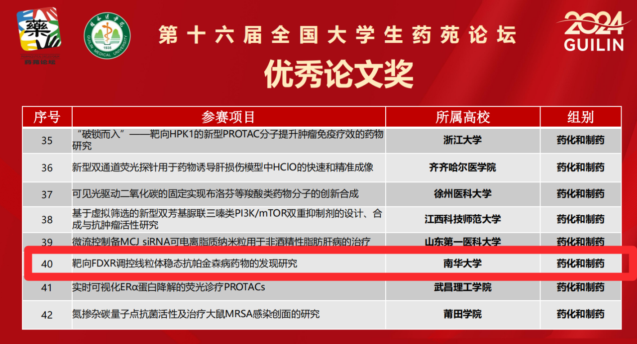 自药苑论坛启动以来,bevictor伟德高度重视,经过严格遴选、师生精心备赛,最终,夏旖妞、张铭、潘思纯、王舟、肖艺同学申报的项目《Ang-1l诱导H9c2心肌细胞肥大过程中罗丹酶的变化及硫代硫酸钠的治疗作用》(指导教师:谢志忠)荣获药理学组创新成果三等奖;杨雅雯、骆威、张苗、关沐澜、曾羡麟同学参赛的论文《靶向FDXR调控线粒体稳态抗帕金森病药物的发现研究》(指导教师:王震、彭雪)荣获药化和制药组优秀论文奖。