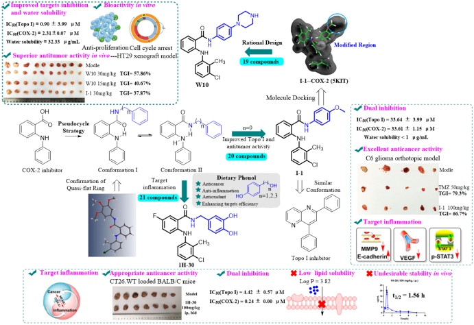 非甾体抗炎药(NSAIDs)已被证明能够改变肿瘤微环境、增强细胞凋亡和减少细胞迁移。基于NSAIDs的“老药新用”策略成为抗肿瘤药物发现的一种新型范式,该研发范式面临着副作用大、靶标亲和力和选择性不高等挑战。基于此,bevictor伟德王震教授团队围绕非甾体抗炎药的结构修饰及改造发现新型肿瘤候选药物开展了持续性的研究工作,并取得了系列成果(J. Med. Chem., 2022, 65, 10481-10505;Eur. J. Med. Chem.,2022, 240, 114560;Eur. J. Med. Chem.,2021, 226, 113817)。