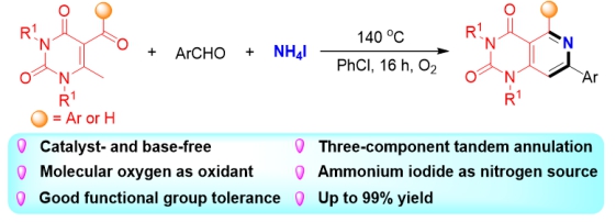该系列工作开发了一种无需催化剂和碱的吡啶并尿嘧啶类化合物合成新策略,具有原料廉价易得、操作简单、绿色环保等优点,为重要稠环尿嘧啶类药物的合成提供了新方法。
