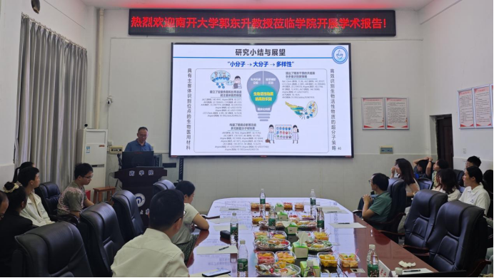 郭东升教授利用大环主体的高效识别进行了小分子药物识别、致病生物大分子、多样性生物分子三个方面的生物医用材料研究。生物医用材料是十四五规划大力推动发展的高端新材料,通过超分子化学领域中的高效分子识别来推动生物医用材料的精准化发展具有重大挑战。首先,郭东升教授在小分子药物识别方面提出一种通过纵向拓展大环空腔提升大环主体结合能力来解决药物精确负载问题策略,建立了定量负载和比率递送的主客体载药模型,发展了高效识别小分子药物的大环载体新材料,比如构建了定量负载阿霉素的深腔大环载体CAC4A、大环两亲组装材料应用于肿瘤组合治疗等。其次,郭东升教授在致病生物大分子方面提出了共组装杂多重识别新策略,发展了高效识别、精准捕获和清除致病生物大分子的大环治疗新材料,如杯芳烃和环糊精共组装杂多重分子识别用于抑制蛋白纤维化治疗阿尔兹海默症、解毒大分子毒素等方面。最后,郭东升教授在多样性生物分子方面向我们介绍了超分子材料库的模块化构筑策略,实现了精确诊断等多元化功能材料的定制化合成,如构筑分子工具箱和识别数据库用于免疫治疗、酶串联检测和超分子放疗等方面。