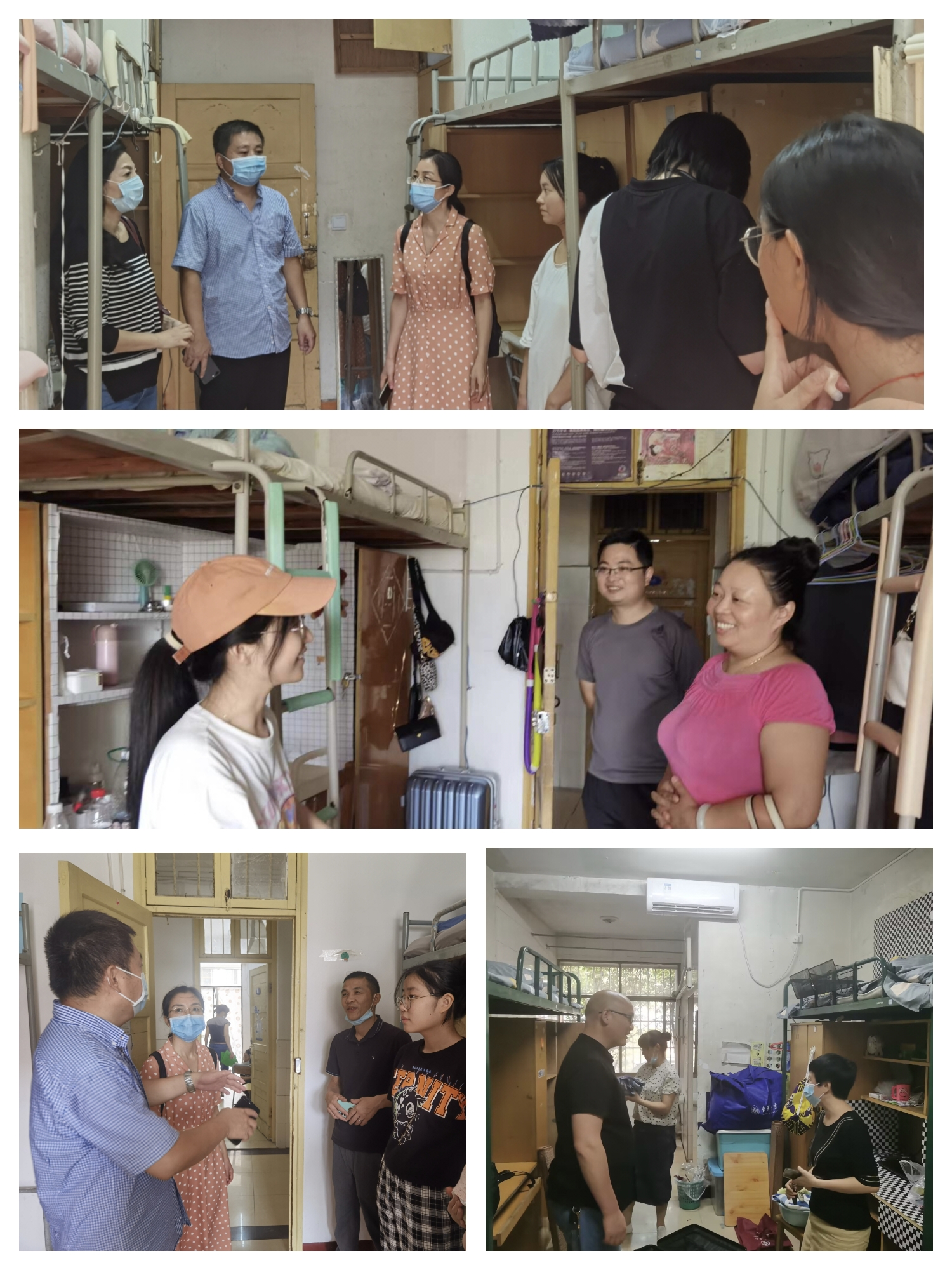 9月2日-3日,公司党委书记袁中华、经理喻翠云、公司党委副书记陈健平、副经理易岚、王力立及学工室全体辅导员走访了2022级迎新现场及本科生、研究生宿舍,深入了解新生的住宿情况、入住感受,了解同学们关于住宿的困难和需求,对新环境的适应情况。走访慰问过程中,公司领导老师和同学们进行了深入交谈,仔细查看了新生住宿环境,耐心细致地回答同学们的问题。在疫情防控常态化形势下,公司领导叮嘱同学们要做好疫情防控措施,遵守公司疫情防控相关规定;鼓励新生同学要提高自我管理能力,养成良好的学习、生活习惯,同时加强体育锻炼,提高身体素质,共同营造良好的生活、学习环境。