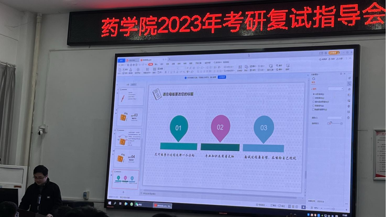 为进一步做好2023届毕业生考研复试工作,帮助考研员工更加充分地做好复试及调剂相关准备取得佳绩,bevictor伟德于3月3日下午在药学楼101室举办考研复试指导会。药公司党委书记袁中华、副书记陈健平、副经理王力立出席会议,特别邀请药剂学教研室主任贺冬秀、2022级研究生代表秦玉婷和伍诗洁主讲,23届考研同学参加会议,会议由就业专干彭翔主持。