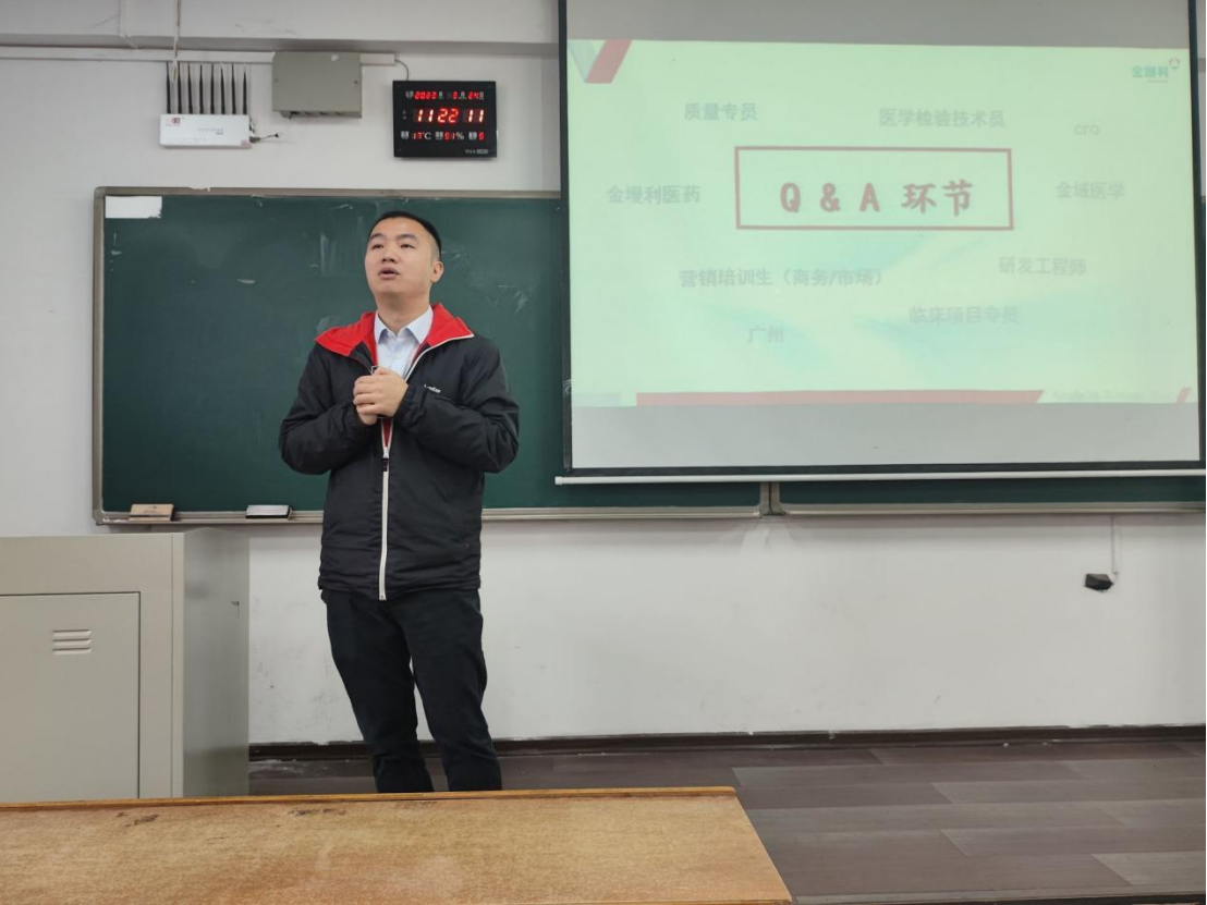 宣讲会上,先由企业市场总监何广宇介绍企业的成立背景、企业规模、发展优势及其未来发展方向等,随后,由人力行政部高级经理黄清贵介绍了企业的招聘岗位、薪酬待遇、培养计划等情况,让在场的同学们对岗位需求有了更深入的了解,在答疑环节,同学们与招聘负责人积极互动,提出问题并得到了耐心回答,许多毕业生现场递交了简历。