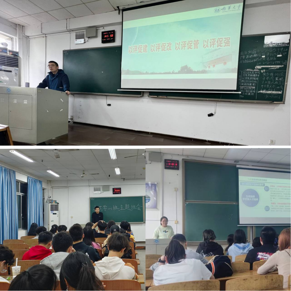 此次主题班会活动由院领导带头,各年级辅导员及班主任深入到分管班级进行宣讲。宣讲内容包括:新一轮审核评估的指导思想、基本原则、评估类型、评估指标,公司迎评的进度安排以及新一轮本科公司产品审核评估应知应会手册等。