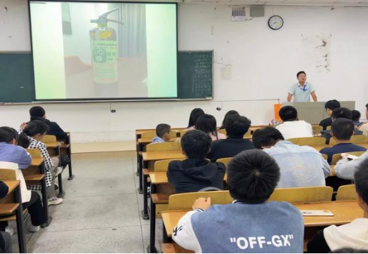 首先,普法消防中心的消防教官王坤对现场师生进行消防培训。他通过案例视频向大家讲解了生活中因不规范使用电器而造成火灾险情的危险事件,同时科普了火灾预防的相关知识、日常消防器具的正确使用方法,以此提醒大家提高警惕,注意日常生活中的安全隐患。