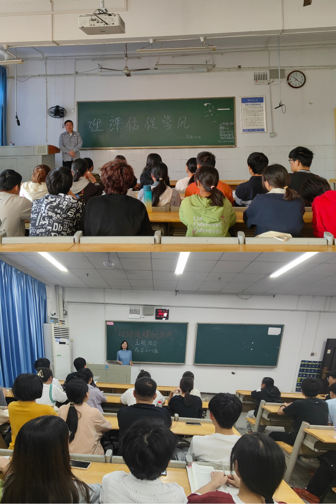 此次主题班会由院领导牵头,各年级辅导员及班主任深入各班组织班会宣讲。宣讲内容包括:迎评促建知识学习、员工手册学习、校园电动车安全教育、员工宿舍安全教育等。