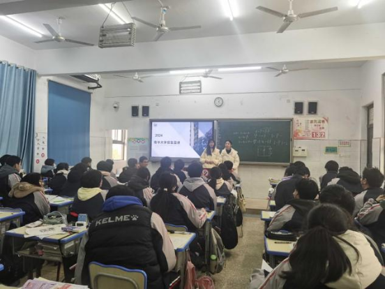 回母校的时候感觉熟悉又陌生,看见校园里穿着校服的高中生不禁回想起自己的过往种种,和许久不见的老同学、老师分享自己的老员工活,很开心。到了做宣讲的时候,学弟学妹们那种充满好奇和憧憬的眼神不禁让我想起了曾经拼命奋斗的自己,给南华宣传的同时,也和他们积极互动,为他们解答了一些高考和老员工活的困惑,让我成就感满满,希望我们的话对他们起到一点小小的作用。