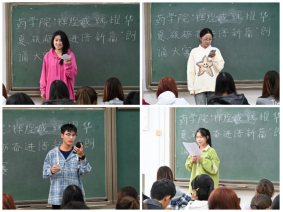 10月20日下午,朗诵比赛的初赛在南华楼109举行。初赛的评委由陈伊冉、刘晨、李毓婉、陈琪、高忆晗等同学担任。比赛现场气氛热烈,选手们精神饱满,他们用激昂的声音、真挚的情感,朗诵了一篇篇赞美祖国、歌颂新时代的文章。有的选手深情地表达了对祖国辉煌成就的赞美,有的选手则以激昂的节奏展现了新时代青年砥砺奋进的决心。他们的精彩表现赢得了现场观众的阵阵掌声。经过激烈的角逐,15组优秀选手脱颖而出,成功晋级决赛。