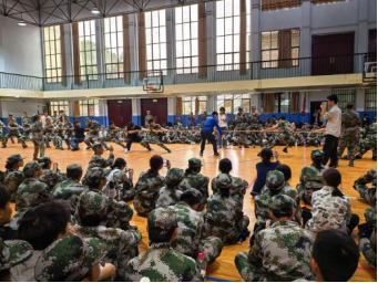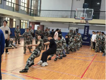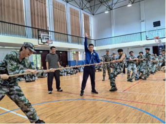 各参赛连队早早齐聚赛场,队员们摩拳擦掌、眼神坚毅,有的围圈搭肩高喊口号,有的屈膝沉腰模拟发力。裁判哨响划破长空,赛场瞬间沸。麻绳两端的选手紧握长绳,脚掌如钉嵌地,腰背如弓蓄力。当“加油”声浪涌起,百余双臂同时发力,麻绳绷成满月。这场较量中,既有狭路相逢的胶着:红绸带在中线处来回震颤,双方队员牙关紧咬,连呼吸都带着较劲的节奏;亦有势如破竹的捷报:连队凭借默契的号子声与爆发式发力,将对手连人带绳拖拽过线,赢得满堂喝彩。场外,未参赛同学组成啦啦队,加油的呐喊层层叠叠,推着选手们挺过极限。