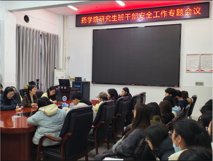 3月18日下午,药公司党委副书记陈健平召集研究生班干部在101会议室召开安全工作专题会议,传达公司安全教育管理相关要求,部署近期班级安全重点工作。25级研究生班主任许婷、兼职研究生辅导员杨丝棋、全体研究生班干部参加会议。