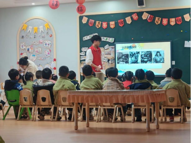 活动现场,志愿者们结合学龄前儿童认知特点,精心设计了动画视频赏析、情景趣味问答、快乐套圈比拼等互动环节:通过动画版雷锋小故事引导小朋友认识乐于助人的传统美德,将安全防护、是非辨别等知识融入问答设计,用浅显易懂的语言告诉孩子们做好事要先学会保护自己。孩子们积极举手参与问答,欢声笑语贯穿全程,奉献精神与自护意识以符合幼儿认知规律的方式有效传递,孩子们既收获了快乐,也在心中埋下了向善与自护的种子。