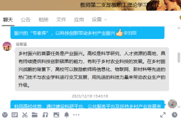 习近平总书记强调:“要推动乡村人才振兴,把人力资本开发放在首要位置,强化乡村振兴人才支撑”。随着新时代背景下国家发展的需要,农村经济发展的加速和现代农业技术的不断推广,农村人才的需求日益渐大,但由于农村基础设施相对落后,人才待遇普遍较低、发展机遇和前景也不如城市,使得农村很难留住人才。在学习过后,教师第二党支部书记彭俊梅组织大家在教职工理论学习群里就“如何利用我们自身优势,充分发挥伟德官方网站在乡村振兴中的社会服务职能”进行了交流讨论。其中,魏华说:“在全面推进乡村振兴的历史进程中,高校在人才、科研、文化等方面具有鲜明的优势,应自觉担负起历史使命与责任。高校在助力乡村振兴的进程中,应充分发挥学科、科技、智力和人才优势,因地制宜,精准施策,深入挖掘乡村特点,发展乡村产业、乡村经济、乡村文化与乡村生态。在充分考虑乡村建设实际的基础上,构建乡村振兴政策体系,引导资金、技术、人才等资源向农业农村配置,推动农业农村高质量发展。对高校来说,采取校地共建形式,对接一个乡镇或村,建设一个高校服务乡村振兴的区域示范基地,是一条值得探索的服务乡村振兴的新路径。同时,高校更好地服务乡村振兴,也需进一步明确努力方向,提升服务能力和质量。我们要把准乡村振兴战略要求,提升服务能力,根据乡村振兴战略实施需要对专业学科设置、科学研究方向等作出相应调整,提升服务乡村振兴战略的能力。应进一步加强校地合作平台建设,把服务乡村振兴战略的设计纳入地方经济社会发展的计划中去,创新校企合作共建机制,发挥高校的人才和科研优势,发挥企业在资金和产业链延伸等方面的优势,积极探索产学研无缝对接的有效模式和共同培育高素质技术人才的长效机制。让高校科技创新为乡村振兴提供‘原动力’,还需要体制机制的保障。特别是在深入推进教育评价改革的背景之下,优化科研评价机制,在相关学科和研究领域,建立以服务乡村质量或效果作为重要科研评价指标的评价体系、考核办法和奖励机制,有效激发了高校科技人员投身乡村振兴的积极性。”