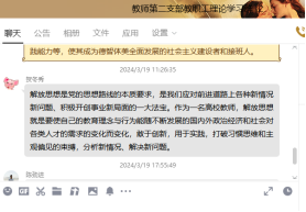 3月18至19日,公司教师第二党支部开展了2024年度第2次教职工理论学习。本次学习以线上线下相结合、个人自学与专题研讨相结合的形式进行。老师们结合工作实际,围绕“解放思想,推动公司高质量发展”主题进行了讨论,表示将认真学习理论,不断开拓视野、创新思路、破解难题,以思想大解放、工作大落实推进公司高质量发展。