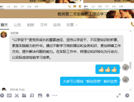 魏华老师在讨论时提出“随着时代的发展,如何做一名优秀的教师,这是值得我们每一位高校教师用一生去思考的问题”引起了老师们的思考和热议。他认为,优秀不是终生的。过去是“不进则退”,现在是“慢进则退”,不进将会很快被淘汰,昨天的合格教师,今天不一定合格。只有与时俱进,努力提高自己的业务水平,不断的学习、探索、成长,才能成为一名始终合格的教师。对于在愈来愈卷的大环境下,怎样才能成为一名适应当代发展趋势的合格教师?他也提出了自己的观点,一是教师必须做到爱岗敬业,加强师德修养;二是教师必须做到博学多才;三是教师必须拉近与员工心灵的距离。教师爱自己的员工,就是要真正找到员工身上的闪光点,以心换心,成为他们的朋友。王佶恺老师在发言时也表示,作为药学专业教师,要注重培养员工的创新思维和实践能力,鼓励员工积极参与各种科研项目和社会实践活动,让他们在实践中不断成长和发展。