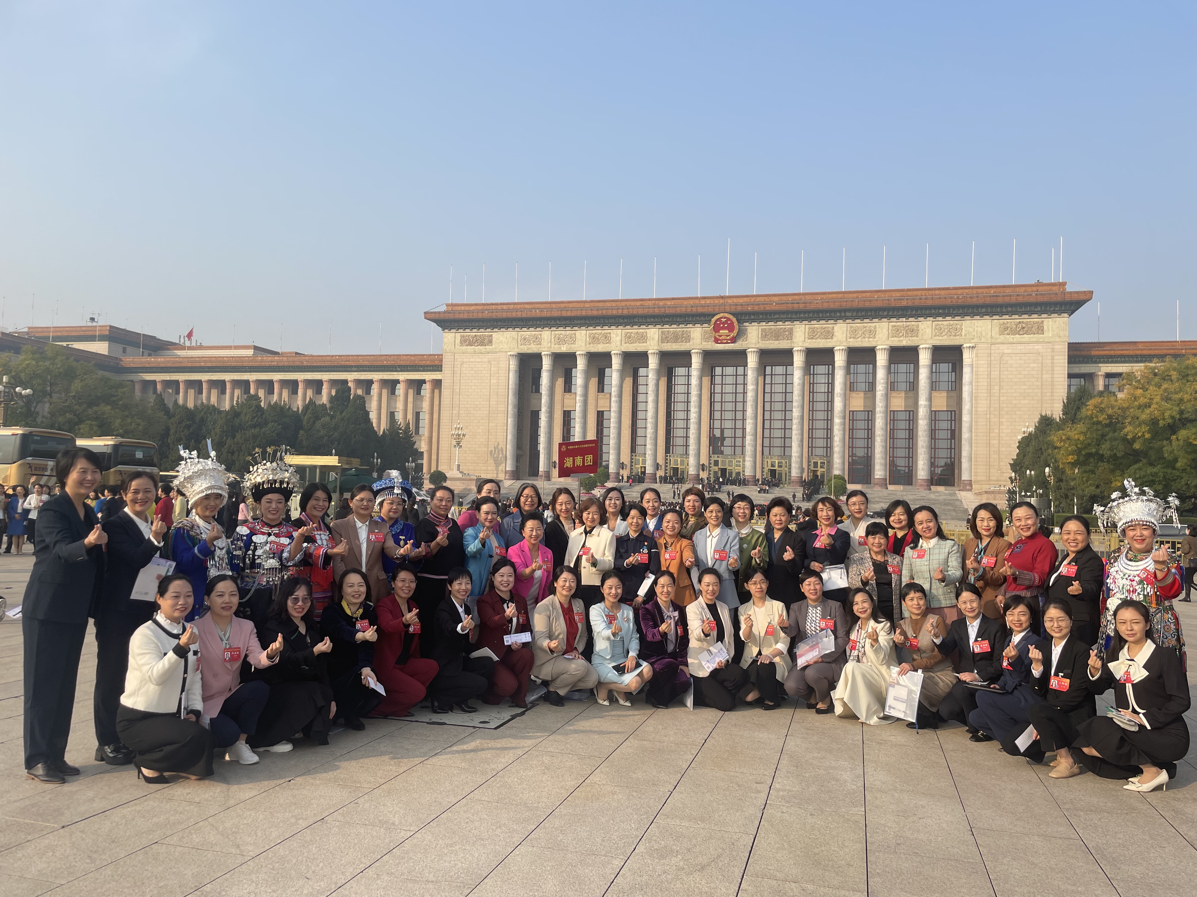 喻翠云与湖南省其他十三大代表在大会堂前合影