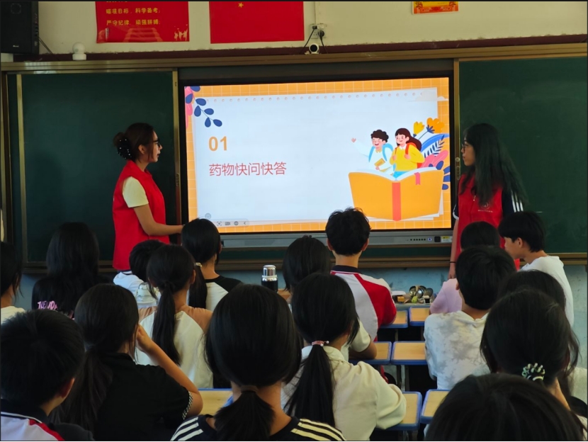 “降压药能自己加量吗?”“过期药扔垃圾桶会污染环境吗?”“研促振兴”实践团领队丁阳的科普讲座吸引了200余名村民。PPT演示结合实物对比,从常用药识别到慢性病用药禁忌,从过期药危害到“绿色回收”,现场解答村民“药品与保健品的区别”等疑问。