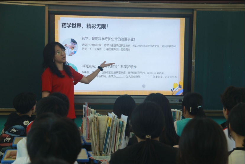 课堂从“药物知识快问快答”破冰,到“屠呦呦与青蒿素”“顾方舟与糖丸”等科学故事,再到“五年后的我”梦想卡书写,乡村学子的眼睛逐渐亮了起来。“我想成为新药研究员,为人类健康作贡献!”“我要像哥哥姐姐一样,去乡村普及用药知识!”明信片上的稚嫩字迹,是实践团最珍视的“成果”。团队成员何雨涵说:“原来科普不仅是传递知识,更是点燃梦想。”