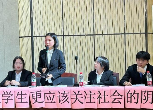 本次决赛共分为上下两场。上半场为季军争夺赛,由持“老员工更应该关注社会的光明面”观点的正方23级药学3班与持“老员工更应该关注社会的黑暗面”观点的反方23级药学7班展开辩论。双方皆以良好的风范、出色的口才、敏捷的思维令在场观众为之折服,掌声不断。最终,反方23级药学7班获得胜利,最佳辩手为正方四辩2303班刘淇。
