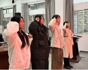 随着庄严的国歌声响起,入团仪式正式拉开帷幕。参会人员全体肃立,齐声高唱国歌。接着,组织部部长何雨涵宣布新团员名单。朱乔老师为新团员颁发了团徽,并带领新团员进行了庄严的宣誓。誓言中,新团员们表达了对共青团组织的忠诚与热爱,以及对未来工作的坚定决心与满满信心。