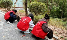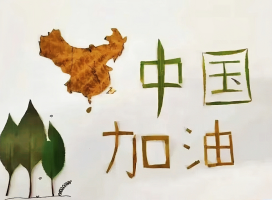 同学们身着红色志愿服务马甲,手持环保垃圾袋,细心地清理着每一寸土地,将散落的落叶拾起。随后,同学们以小组为单位,利用刚刚收集的五彩斑斓、形态各异的落叶,开始创意无限的落叶拼花制作。他们发挥奇思妙想,将落叶作为创作素材,精心雕琢出一幅幅情感饱满的作品。有的作品巧妙运用落叶的缤纷色彩,搭配“75”字样,以此铭记过往的峥嵘岁月;有的则将“中国加油”的励志口号融入其中,寄托着对未来的美好憧憬与期待;更有作品以树叶拼贴出鲜艳的国旗图案,生动展现了拳拳爱国之心。