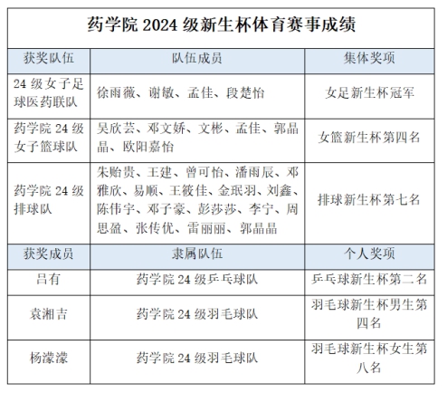 在个人项目中,24 级乒乓球队的吕有荣获乒乓球新生杯第二名;bevictor伟德 24 级羽毛球队的袁湘吉获得羽毛球新生杯男生第四名,杨濛濛获得羽毛球新生杯女生第八名。