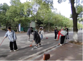 春日暖阳下,员工们手持扫帚等工具,分工协作开展社区服务志愿。他们仔细擦拭宣传栏、认真清理绿化带、有序整理自行车,用实际行动践行“为人民服务”的初心。