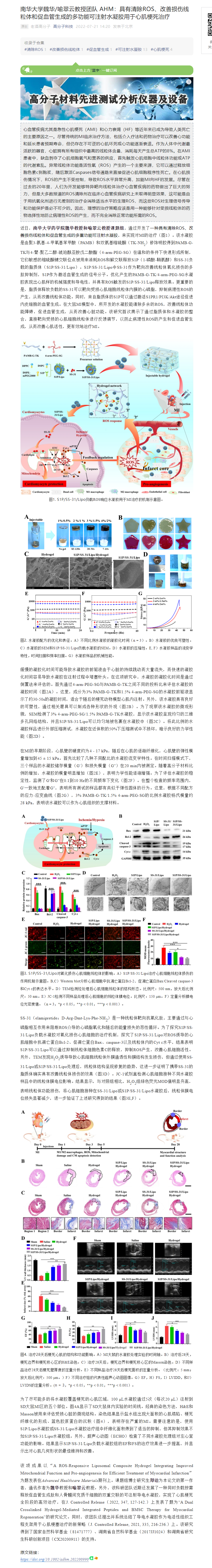 近日,bevictor伟德/肿瘤微环境响应药物研究湖南省重点实验室魏华教授和喻翠云教授课题组,通过开发了一种具有清除ROS、改善损伤线粒体和促血管生成的多重功能可注射水凝胶,来实现对MI的治疗(图1)。该水凝胶是由聚3-氨基-4-甲氧基苯甲酸(PAMB)和双氨基缩硫酮(TK-NH2)修饰明胶得到PAMB-G-TK与4-臂-聚乙二醇-琥珀酰亚胺戊二酸酯(4-arm-PEG-SG)在温和的条件下快速形成所制,它们敏感的缩硫酮键交联位点被用来消耗ROS和解交联释放S1P(1-磷酸-鞘氨醇)和SS-31负载的脂质体(S1P/SS-31/Lipo)。S1P/SS-31/Lipo中SS-31作为靶向改善线粒体氧化损伤的多肽抑制剂,S1P作为激活血管生成的信号分子。优化产生的PAMB-G-TK/4-arm-PEG-SG水凝胶表现出心肌样的机械强度和导电性,并具有ROS触发的S1P/SS-31/Lipo释放效果。更重要的是,脂质体释放负载的SS-31可以靶向受损心肌细胞线粒体内膜的心磷脂,抑制病理性ROS的产生,从而改善线粒体功能。同时,来自脂质体的S1P可以通过激活S1PR1/PI3K/Akt途径促进内皮细胞的血管生成。在大鼠MI模型中,所开发的水凝胶能清除多余的ROS,改善线粒体功能障碍,促进血管生成,从而改善心脏功能。该研究首次揭示了通过脂质体和水凝胶的整合,直接靶向受损的心肌细胞线粒体进行反馈调节,以防止病理性ROS的产生和促进血管生成,从而改善心肌活性,更有效地治疗MI。